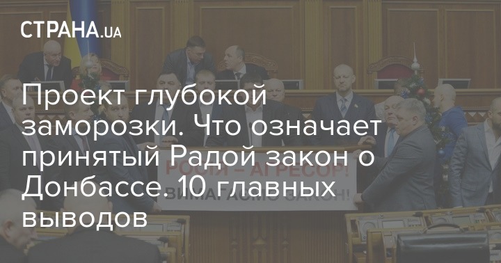 Принятый законопроект не меняет принципиально положение дел на Донбассе, а скорее направлен на "заморозку" конфликта и его продление в нынешнем формате "ни мира, ни войны". Еще более осложняется поиск компромиссов и реальная реинтеграции региона на основе Минских соглашений, которым (особенно их политической части) этим законом был фактически показан средний палец руки.