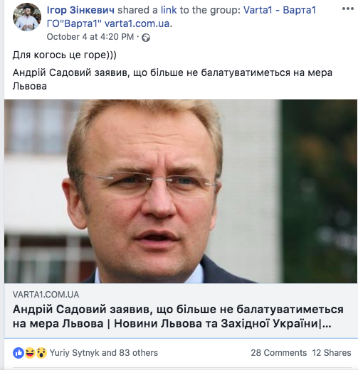 "А он уже решил все тысячи проблем города, за которые ему еще в марте "болело"? Во Львове проблемы с застройщиками, транспортом, мусором - практически со всем, кроме, конечно, фестивалей и трамвая на Сихов", - иронизируют в соцсетях львовяне по поводу участия Садового в выборах главы государства.