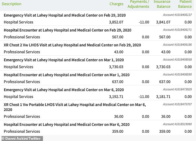 Один из счетов, выставленных жительнице Бостона за лечение коронавируса. Danni Askini/Twitter