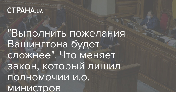 Автор этой нормы закона, депутат Алена Шкрум (фракция "Батькивщина") в разговоре со "Страной" сказала, что парламент не просто ограничил полномочия и.о. министров, но и определил для премьера срок в 30 дней для подачи реальных кандидатур министров.