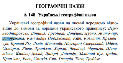 Тут же указано, что украинские географические названия на письме передаются в соответствии с произношением по нормам украинского правописания.