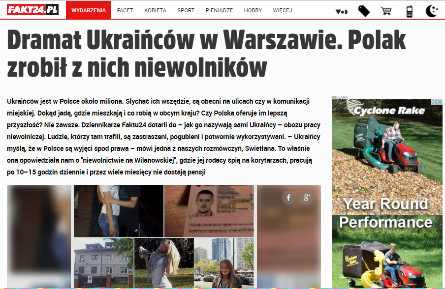 В сентябре прошлого года интернет-издание fakt24.pl опубликовало материал под названием "Драма украинцев в Варшаве. Поляк сделал из них рабов", в котором рассказало о лагере, где использовался рабский труд украинцев.