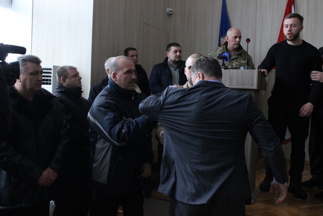 В такой гнетущей атмосфере и начали собираться на сессиию 29 января черкасские депутаты. Но едва они заняли свои места в помещении Приднепровского райсовета, как в зал вошли и встали между рядами неизвестные в камуфляже и тактической одежде.