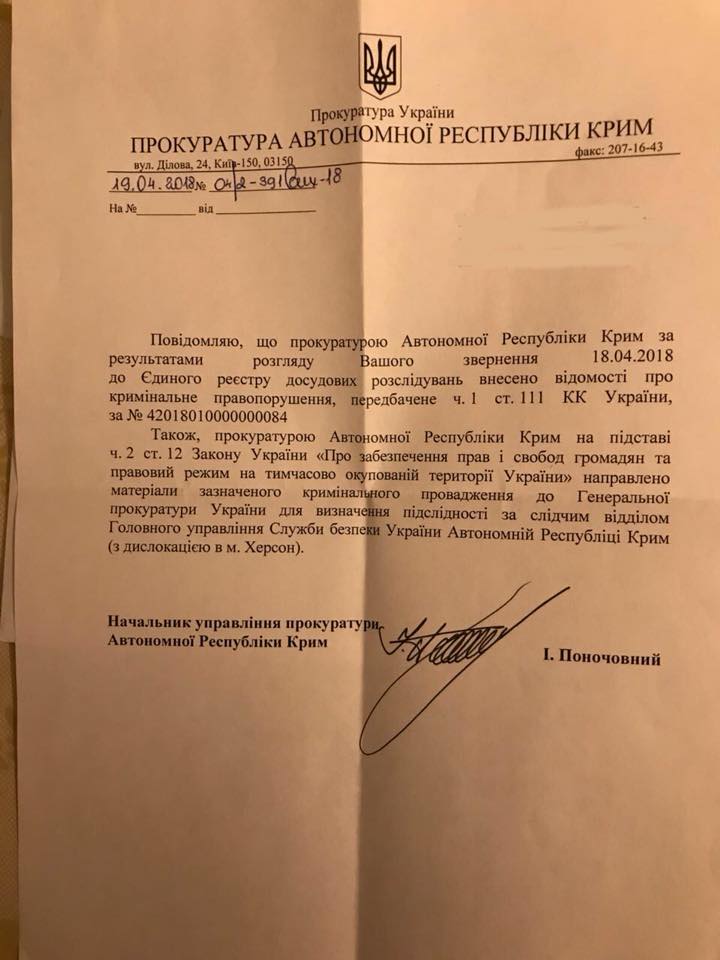 В начале мая стало известно о кадровой ротации в руководстве прокуратуры Автономной Республики Крым, которая после аннексии полуострова Россией осуществляет свою деятельность и базируется в Киеве.
