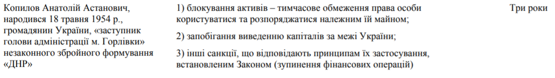 Профайл Копылова в "санкционных списках" СНБО 2016-2018 годов, источник фото: rnbo.gov.ua