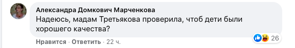Некоторых возмущает то, что для съемок отобрали "красивых, избранных детей". И что это были не простые дети, а нанятые актеры. "Надеюсь, мадам Третьякова проверила, чтоб дети были хорошего качества?" – троллят пользователи "Фейсбука".