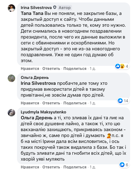 "Дети снимались в новогоднем поздравлении президента, после чего их данные выложили в Сети с обвинениями и оскорблениями", – написала Ирина Сильвестрова.