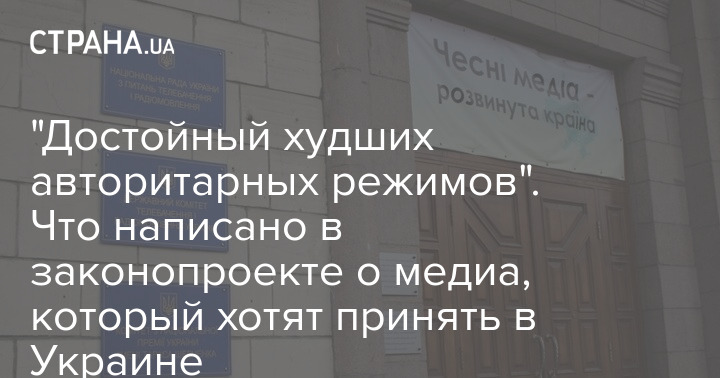 При этом в Европе уже назвали украинский законопроект о медиа "достойным худших авторитарных режимов". Так, Европейская федерация журналистов раскритиковала принудительное регулирование медиа - речь идет о том, что, согласно проекту закона, Национальный совет Украины по вопросам телевидения и радиовещания получит "непропорциональные регуляторные полномочия", и будет иметь "власть не только над аудиовизуальными СМИ, но и над печатными и онлайн-изданиями".