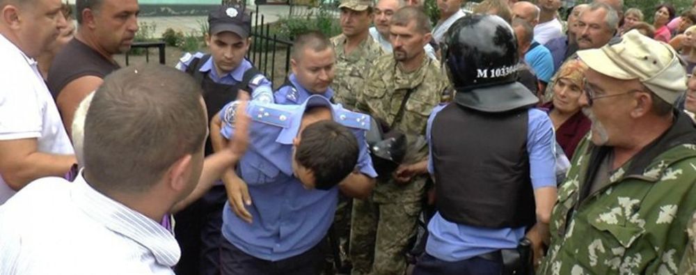 Жители Кривого Озера пытались штурмовать местный отдел полиции, фото: novosti-n.org
