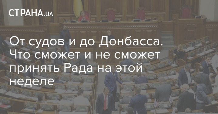 На этой пленарной неделе Верховная Рада предпримет новую попытку принять судебную и пенсионную реформы. Как прогнозировала "Страна", в парламентские стены перенесется скандал вокруг начальника генерального штаба Виктора Муженко, связанный со взрывами на складах боеприпасов в Калиновке. Кроме того, будет внесен законопроект о реинтеграции Донбасса.