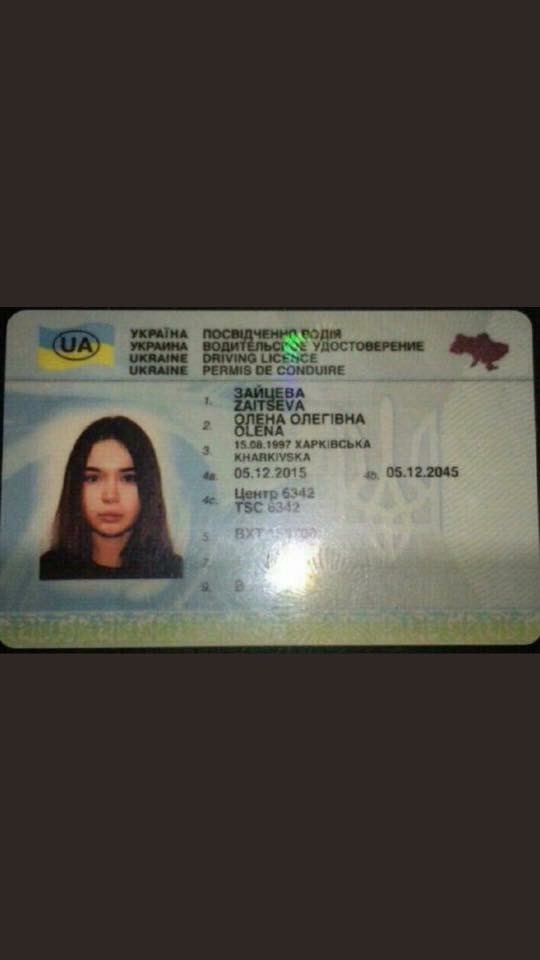 Судя по обнародованной фотографии прав Алены, водительский стаж девушки едва превысил полтора года.