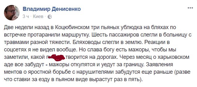 Парламентарий от "Народного фронта" Антон Геращенко через два часа после трагедии назвал находившуюся за рулем Lexus'a Алену Зайцеву "мажором", которая выступает главной виновницей произошедшей трагедии.