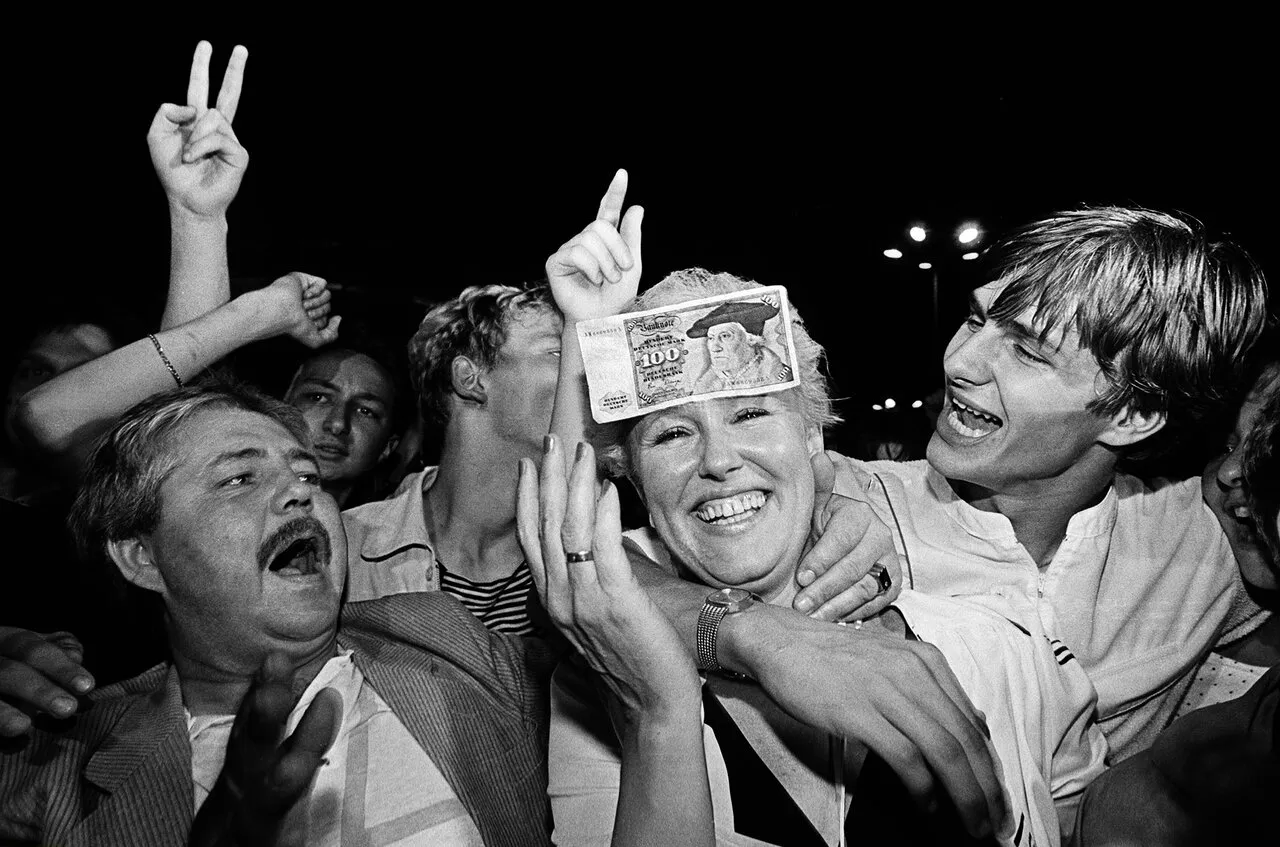 1 июля 1990. Восточные немцы празднуют приход западногерманской марки