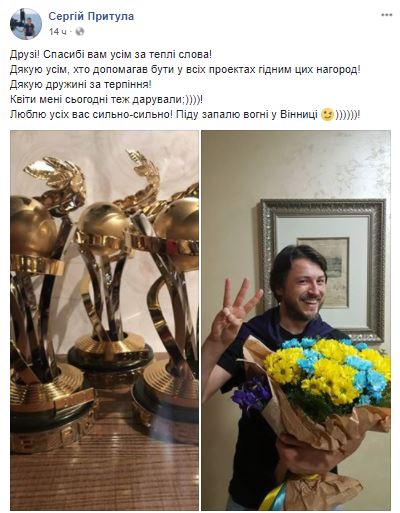 Притула в свою очередь всех поблагодарил у себя на страничке в социальной сети Facebook.