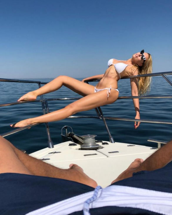 А вот певица Оля Полякова поделилась в Instagram снимком из Одессы, сделанным во время морской прогулки на яхте каким-то мужчиной, ноги и шорты которого видны на фото.