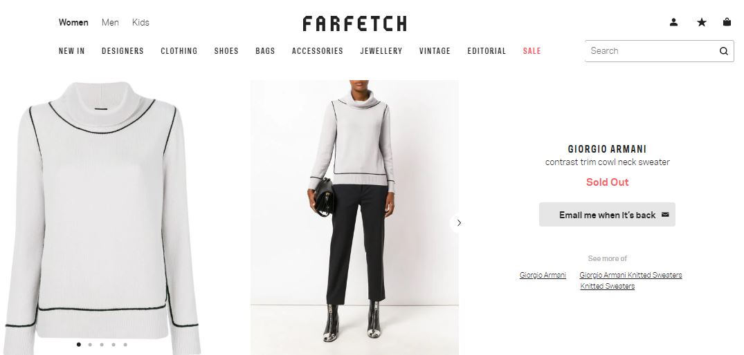 Светло-серый кашемировый (100%) свитер с воротником-хомутом и контрастной отделкой от Giorgio Armani пользуется популярностью среди покупателей, поэтому можно оставить заявку на сайте и вам сообщат, когда он снова появится в продаже.