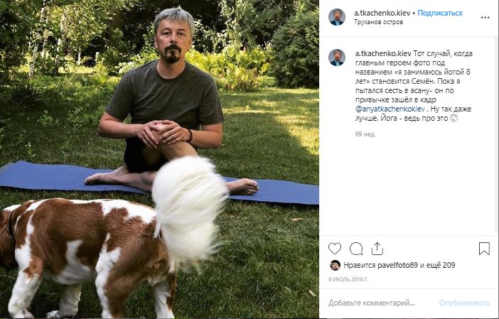 Но вот к примеру, фото из Instagram, как Ткаченко занимается йогой неподалеку дома в июле 2018 года.