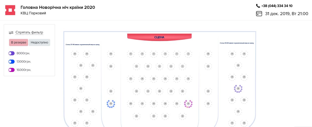 Место за столиком для взрослого стоит от 8000 до 16 000 гривен. И свободных столиков осталось только три на данный момент. Стоимость билета для детей от 2-12 лет: 3000 гривен, включая детское меню (без посадочного места в основном зале).
