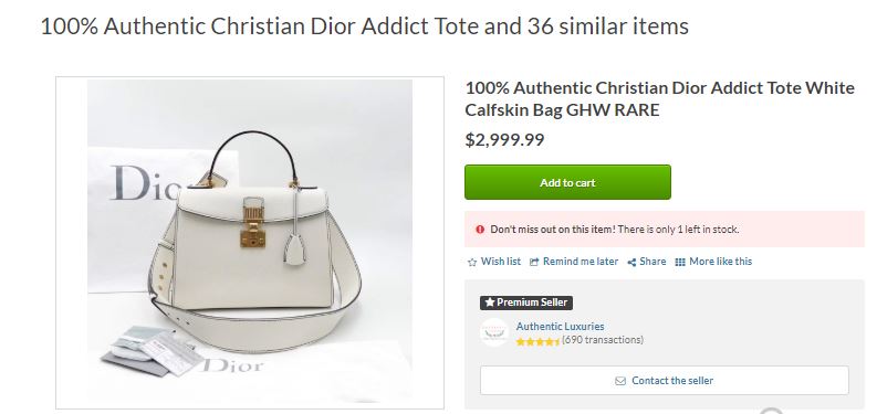 К примеру, вот легендарная белая сумка Dior Addict от французского дома моды Christian Dior.