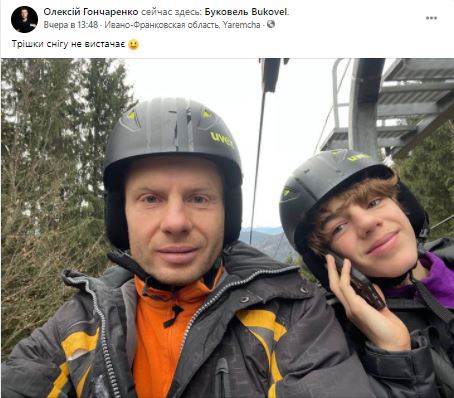 Гончаренко на подъемнике со старшим сыном, фото: facebook.com