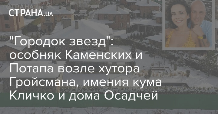 Шоумен и продюсер Потап со своей женой певицей Настей Каменских (NK) построили основательный каменный особняк в элитном поселке под Киевом. А рядом с ними приобрели жилище не менее известные артисты: телеведущая Катерина Осадчая и актер Юрий Горбунов. Кстати, они кумовья и часто ходят друг к другу в гости.