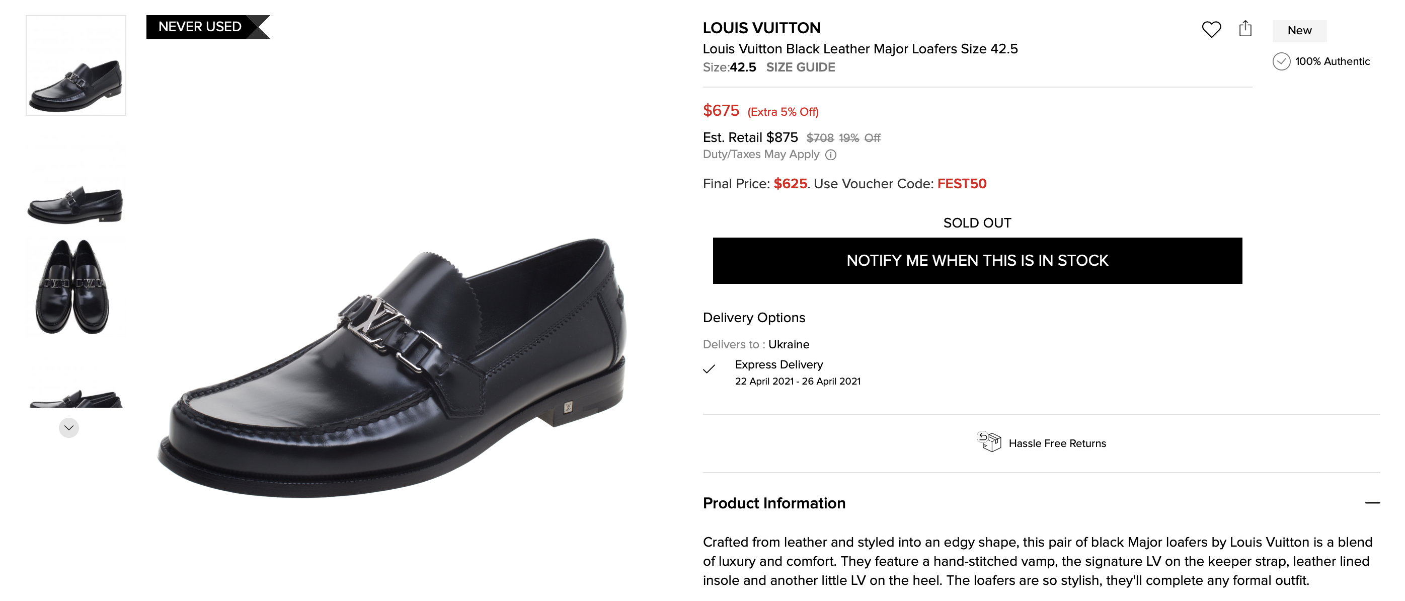 Это кожаные туфли из прошлых коллекций с пряжкой-логотипом LV. В описании к этой модели значится, что это сочетание роскоши и комфорта. Лоферы настолько стильные, что дополнят любой деловой образ.
