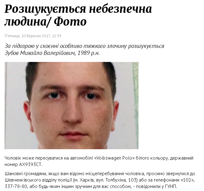 А уже 10 марта 2017 года Харьков потрясло известие о трагедии, случившейся в центре города на улице Залесской. В своей квартире в элитном новострое были найдены задушенными 30-летняя жена Михаила Зубова и его 4-летняя дочь. После этого Зубов был объявлен в розыск:
