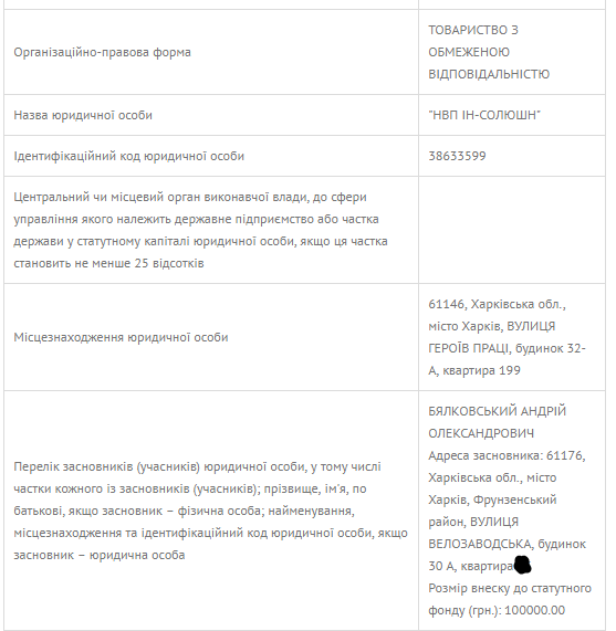 Согласно данным единого реестра юридических лиц, зарегистрирована фирма в отдаленном райцентре Барвенково Харьковской области: