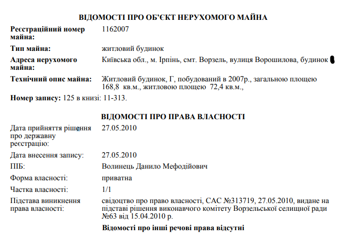 Однако, согласно данным реестра недвижимости, супруг министра владеет недвижимостью в Ворзеле с совершенно другими характеристиками. Например, там за ним числится дом 2007 года постройки площадью 168,8 кв.м. - ни одному из указанных в декларации этот дом не соответствует: