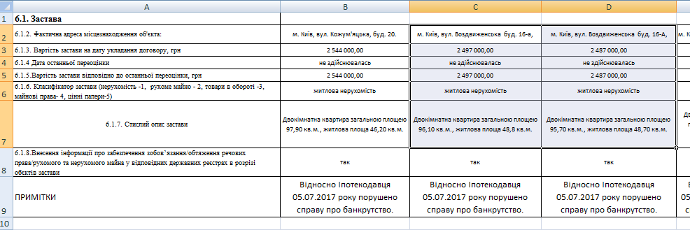 Кредит, обеспеченный квартирами, выкупило ООО "Клен" за 11,4 млн грн. При этом начальная цена была 22,7 миллионов. То есть, объекты были куплены за полцены. Договор был подписан 5 февраля.