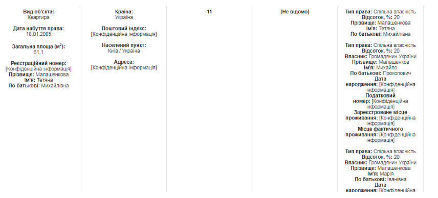 Мария Ивановна Малашенкова вместе Татьяной Малашенковой и другими членами семьи являются совладельцами еще одной киевской квартиры, которую последняя указывала в своих декларациях: