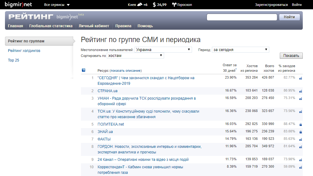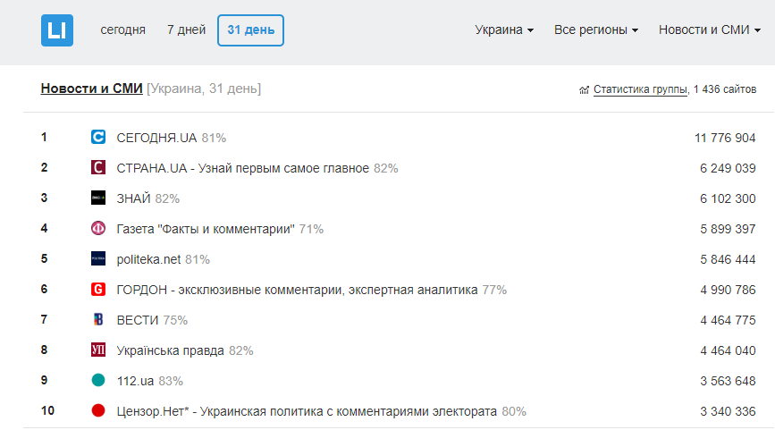 Впрочем, по состоянию на сейчас, 28 февраля, у "Страны" второе место в рейтинге "Лайвинтернета" по месячной аудитории.