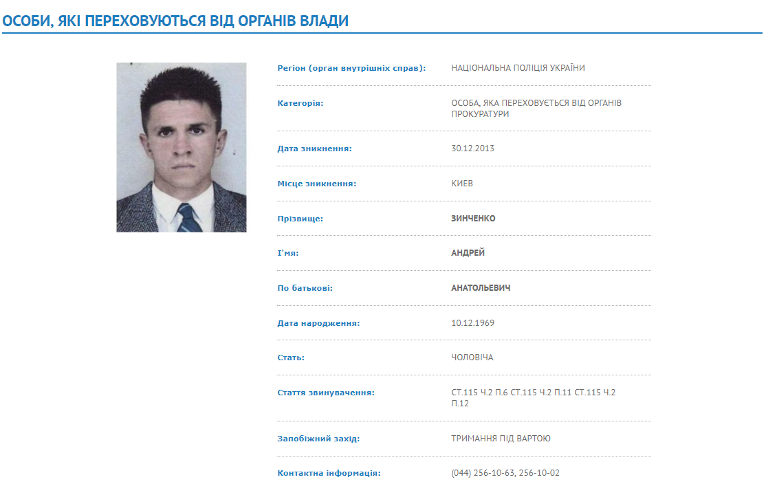 За три недели до падения режима Януковича в МВД сообщили об ожидании ответа на запрос об экстрадиции Зинченко из РФ. Тогда же его арестованным "подельникам" Залюбовскому и Котенко раскрыли материалы уголовного дела для ознакомления. Согласно им, инцидент на 34-м километре Бориспольского шоссе трактовался как бытовуха на дороге. Ее обстоятельства подавались правоохранителями так.