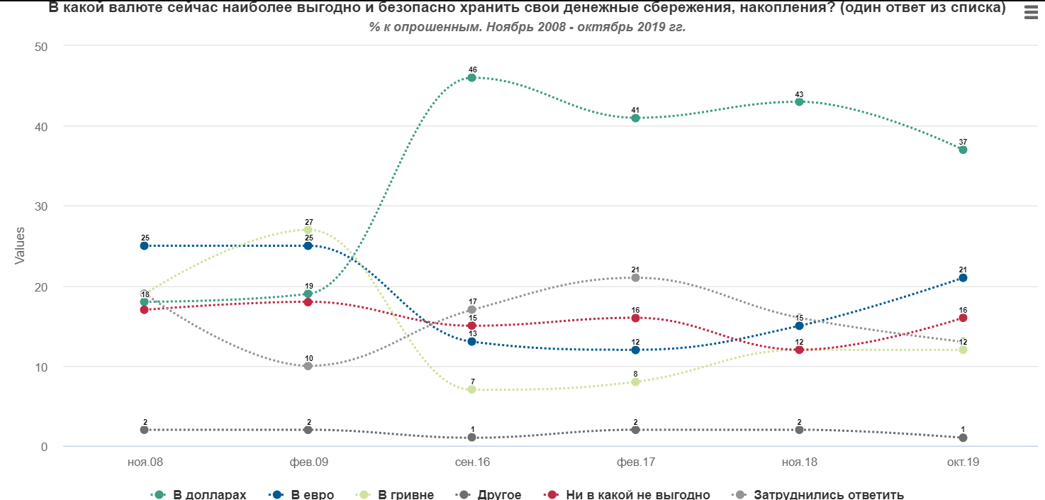 Отмечается, что с ноября 2018 года доллар США несколько утратил доверие в Украине, тогда как доверие к евро примерно настолько же выросло. Заявляется, что доверие к гривне абсолютно не изменилось.