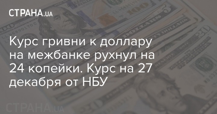 Курс гривни к доллару на межбанке рухнул на 24 копейки. Курс на 27 декабря от НБУ