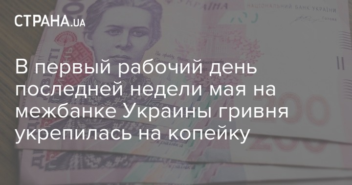 В понедельник, 25 мая, на межбанковском валютном рынке курс гривни укрепился до 26,875 грн/$1 после ослабления до 26,880 грн/$1 в предыдущий рабочий день.