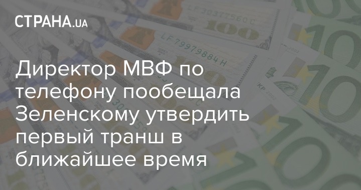Директор-распорядитель Международного валютного фонда Кристалина Георгиева в телефонном разговоре с президентом Украины Владимиром Зеленским сообщила, что утверждение Советом директоров МВФ первого транша согласованной программы stand-by на следующие 18 месяцев состоится в ближайшее время.