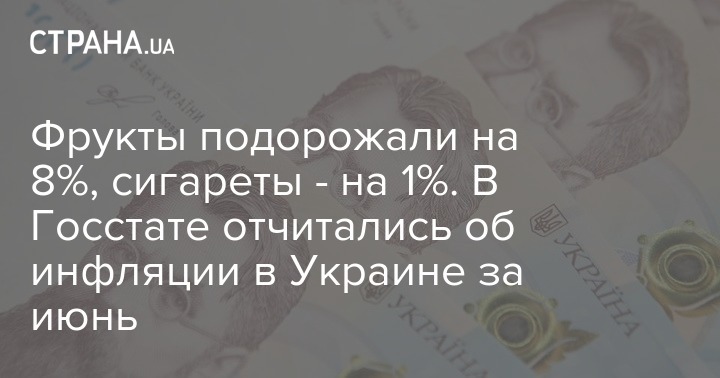 Фрукты подорожали на 8%, сигареты - на 1%. В Госстате отчитались об инфляции в Украине за июнь