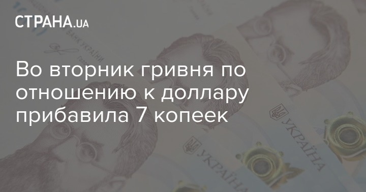 Во вторник гривня по отношению к доллару прибавила 7 копеек