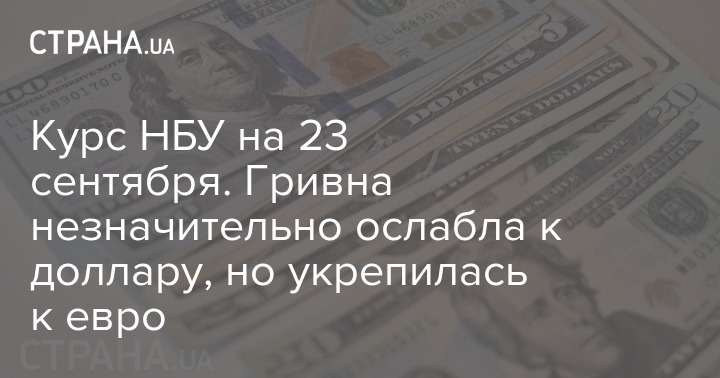 Курс НБУ на 23 сентября. Гривна незначительно ослабла к доллару, но укрепилась к евро. Скриншот: НБУ