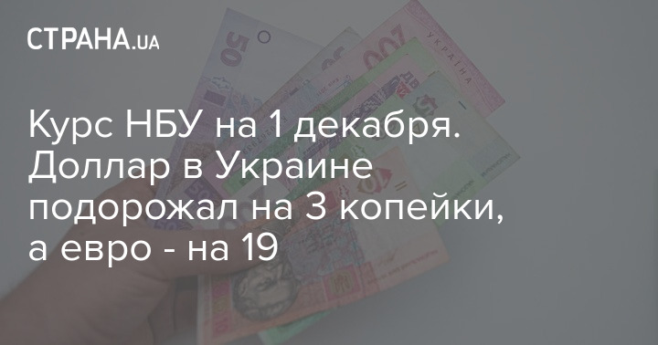 Курс НБУ на 1 декабря. Доллар в Украине подорожал на 3 копейки, а евро - на 19