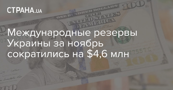 Размер международных резервов Украины в период с начала ноября сократился на 4,65 млн долларов.