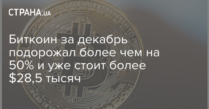 Биткоин за декабрь подорожал более чем на 50% и уже стоит более $28,5 тысяч