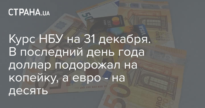 Курс НБУ на 31 декабря. В последний день года доллар подорожал на копейку, а евро - на десять