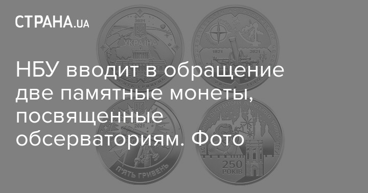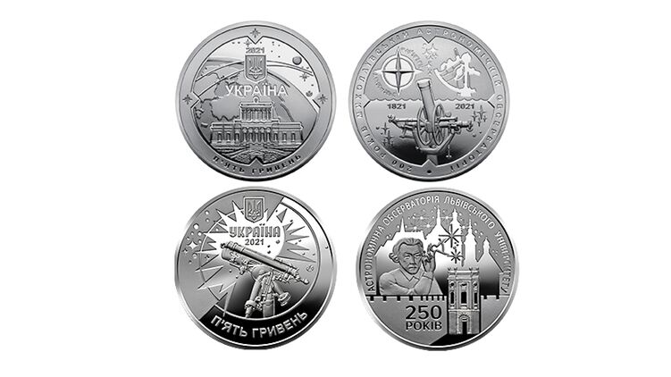 Национальный банк Украины вводит в обращение памятные монеты "200 лет Николаевской астрономической обсерватории" и "250 лет Астрономической обсерватории Львовского университета" с 10 февраля.