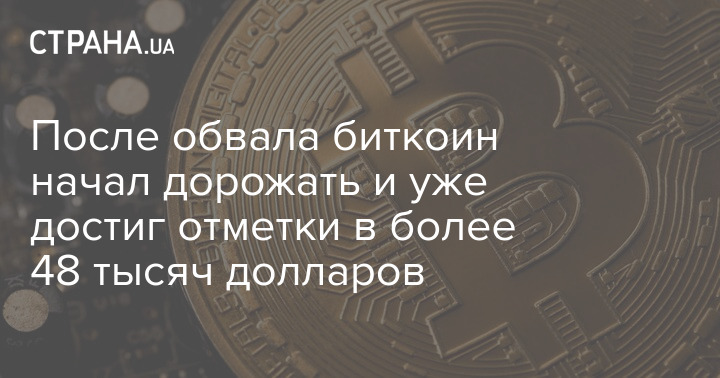 Курс криптовалюты биткоин, который на предыдущей неделе обвалился на 16%, за минувшие сутки вырос почти на 8%. На данный момент он торгуется в районе отметки в 48 тысячи долларов.