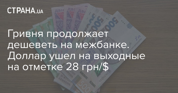 Гривня продолжает дешеветь на межбанке. Доллар ушел на выходные на отметке 28 грн/$