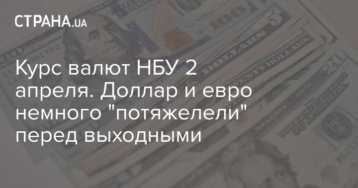 Курс валют НБУ 2 апреля. Доллар и евро немного "потяжелели" перед выходными