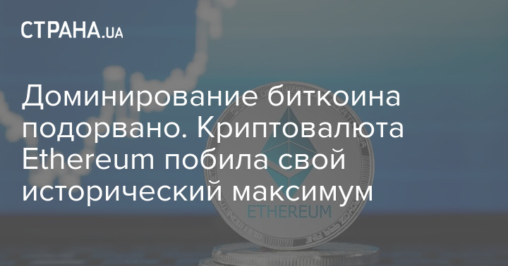 Доминирование биткоина подорвано. Криптовалюта Ethereum побила рекорд стоимости