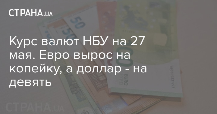 Национальный банк Украины в четверг, 27 мая, установил официальный курс гривны по отношению к иностранным валютам. По сравнению с предыдущим рабочим днем доллар и евро выросли в цене.